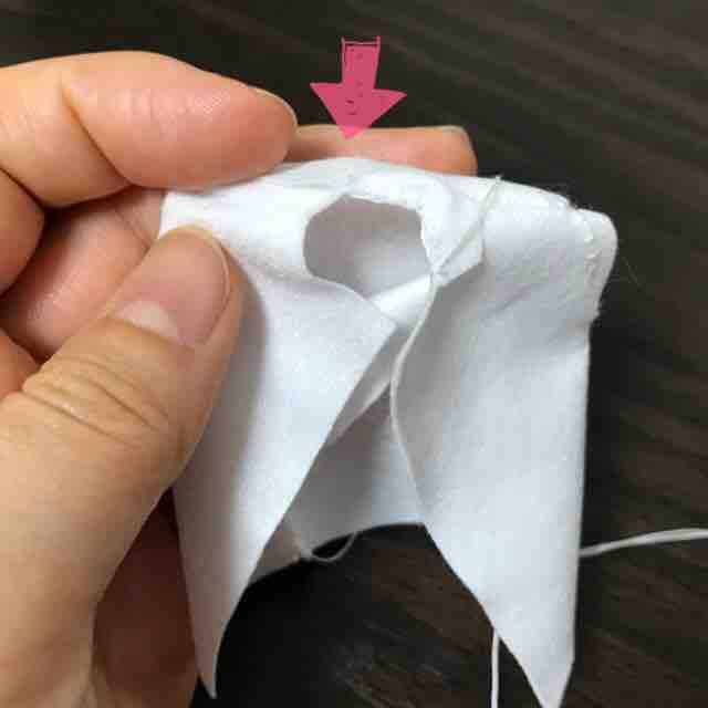 折ったエリで隠れる部分(表側)に玉結びするのが正解なんですね。